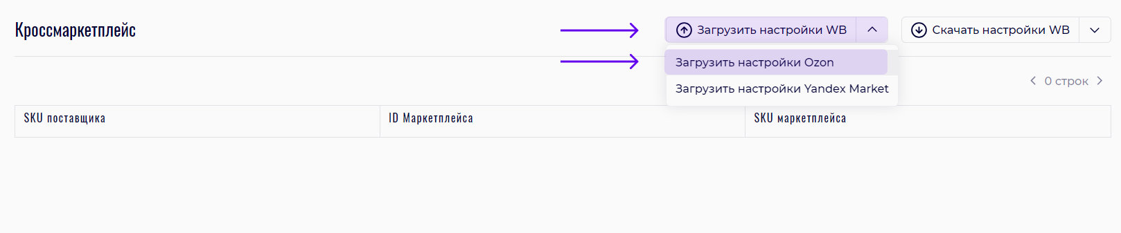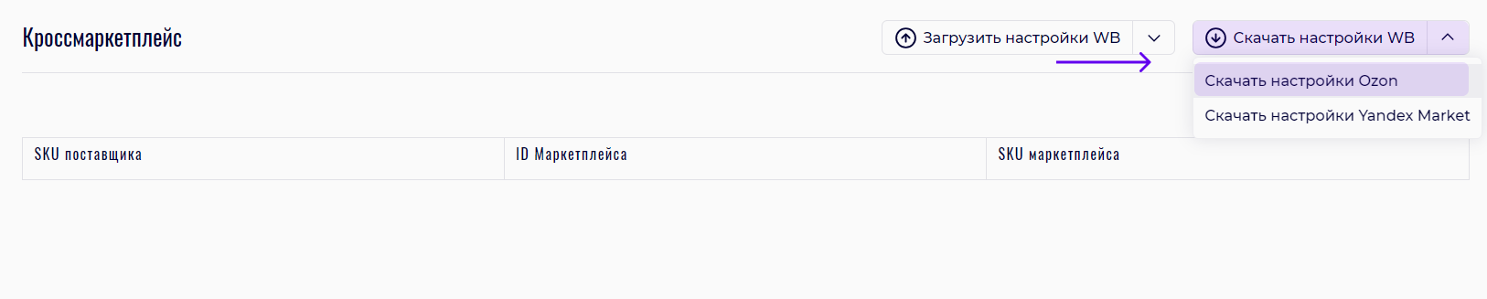 1. Скачайте файлы настроек WB и Ozon в разделе «Кросс-маркетплейс».