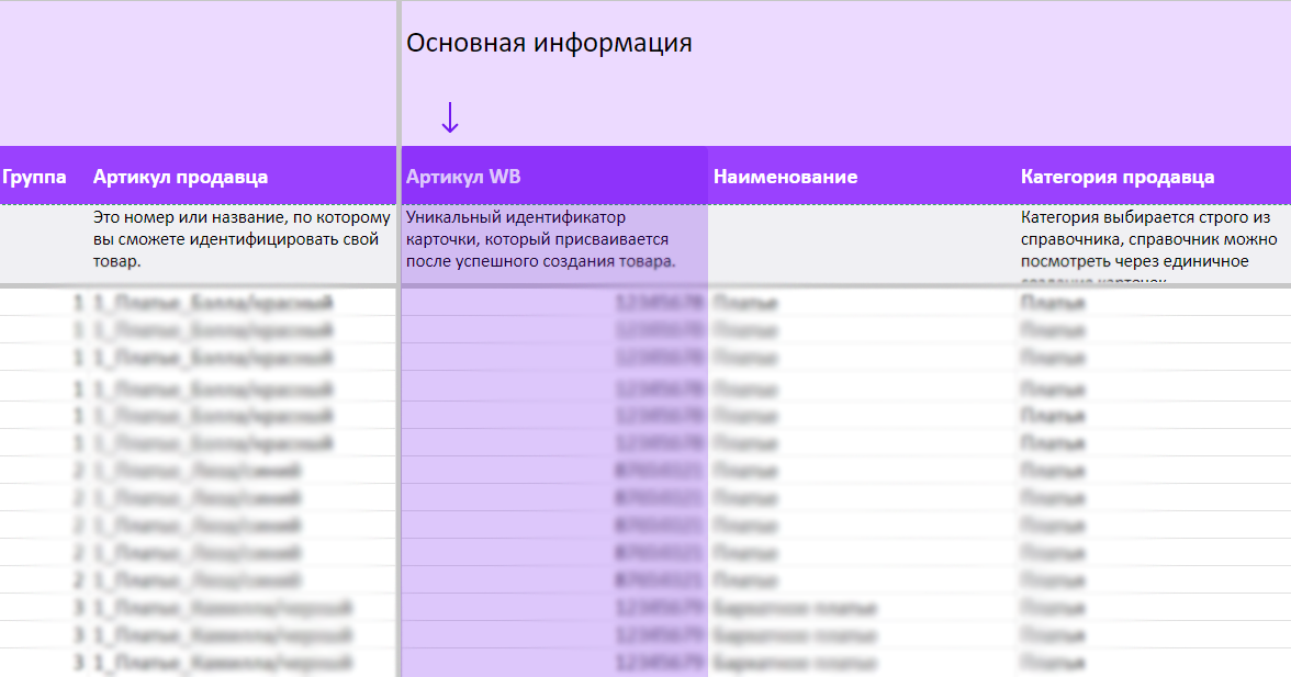 • Для файла Wildberries — это NMID из отчёта «Общих характеристик».