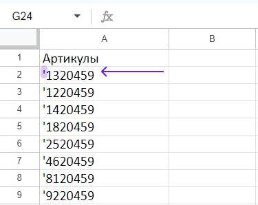 Когда копируете артикулы из отчётов — удаляйте апостроф, чтобы настройка применилась корректно.
