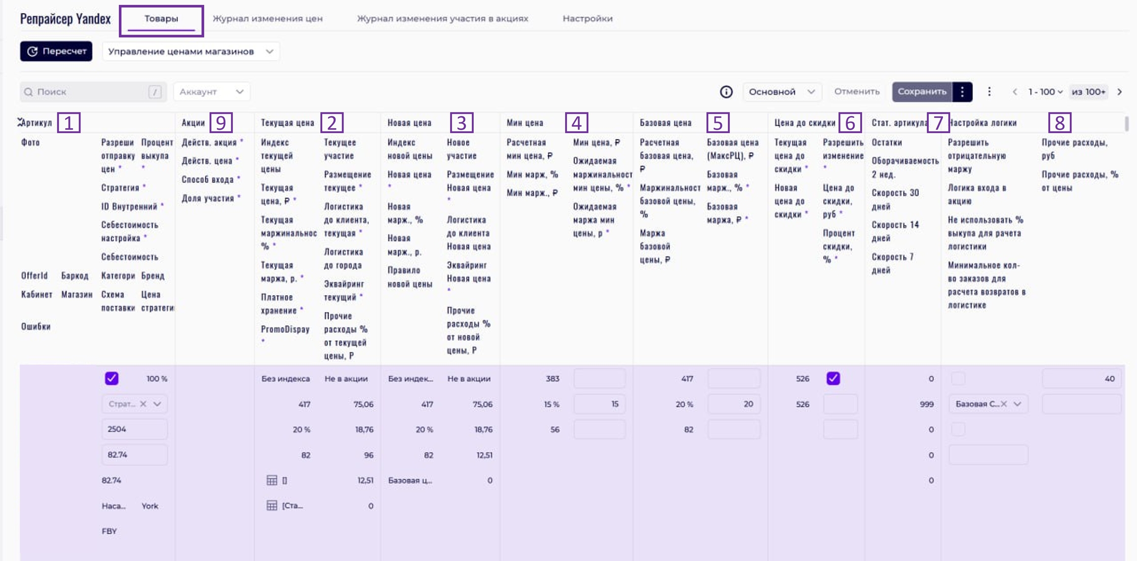 Чтобы все настройки применились, нажмите кнопку «Сохранить». Все настройки автоматически будут применены в течение часа при первом пересчёте цен.