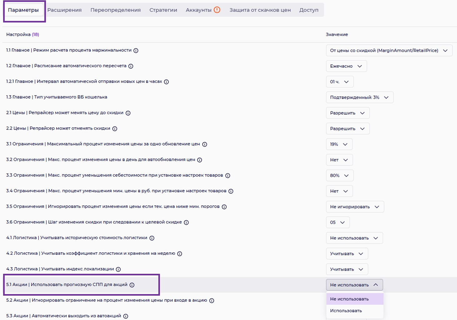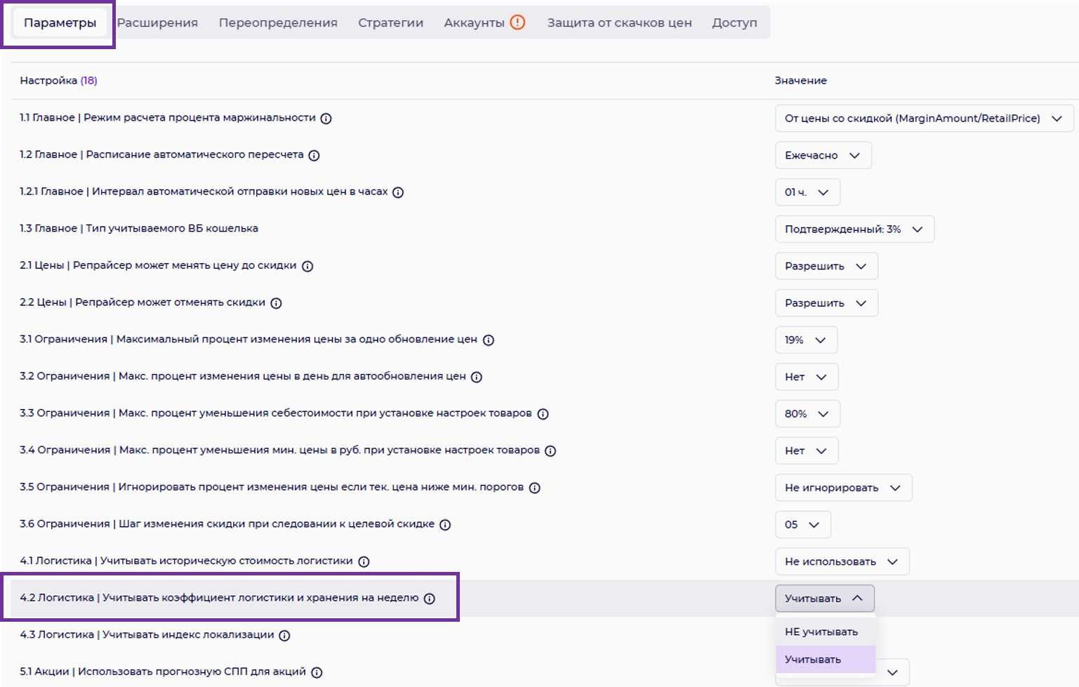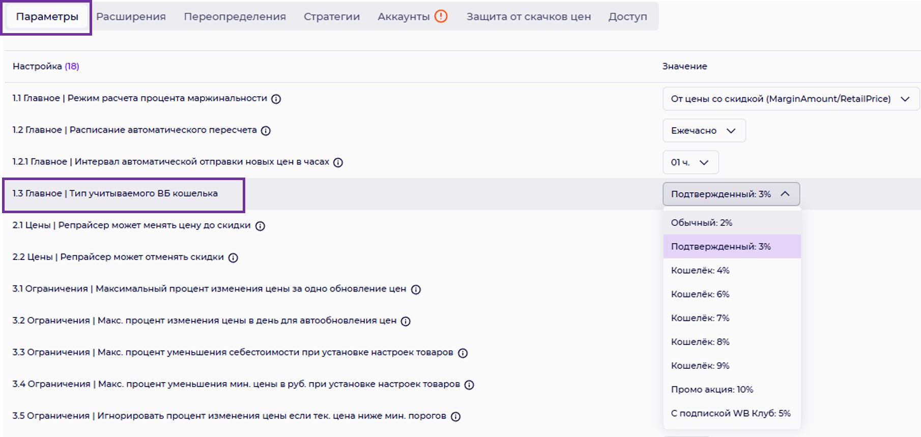 2.2 Цена | Репрайсер может отменять скидки.