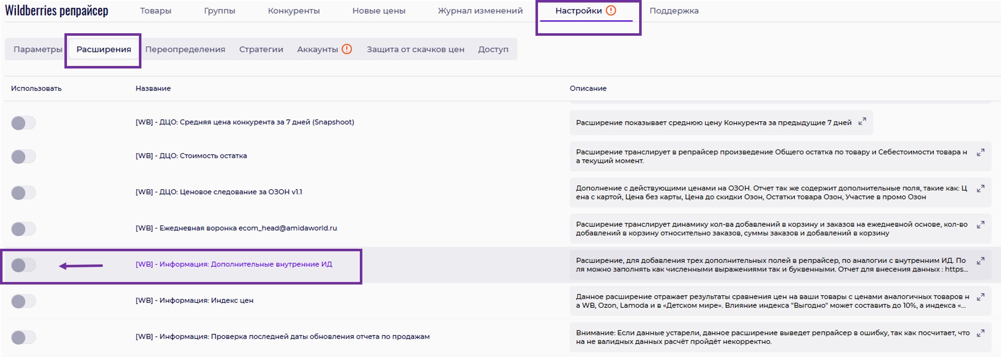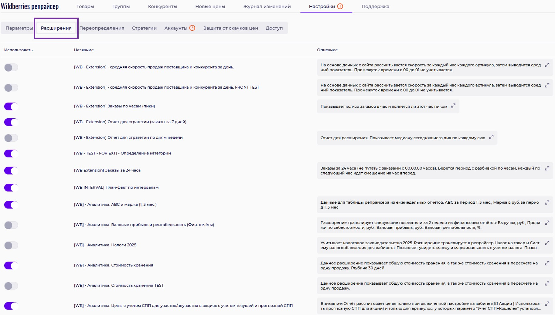 Это лишь базовые расширения, которые помогут вам при работе с репрайсером. Вы также можете подключить любое другое необходимое расширение из списка.