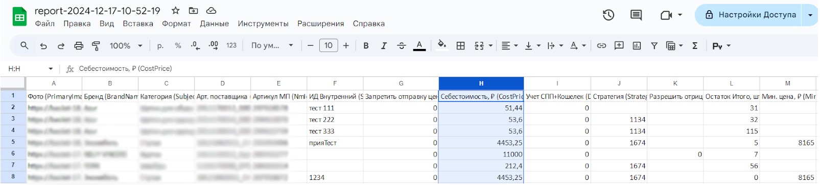 Для вашего удобства настройте один артикул через интерфейс репрайсера, затем скачайте файл и аналогичным образом заполните остальные нужные артикулы.