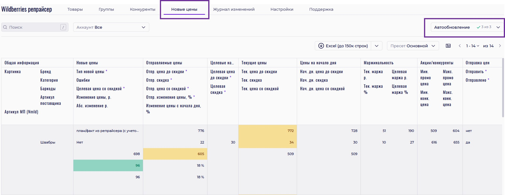Включите автообновление по кабинетам в разделе «Новые цены».
