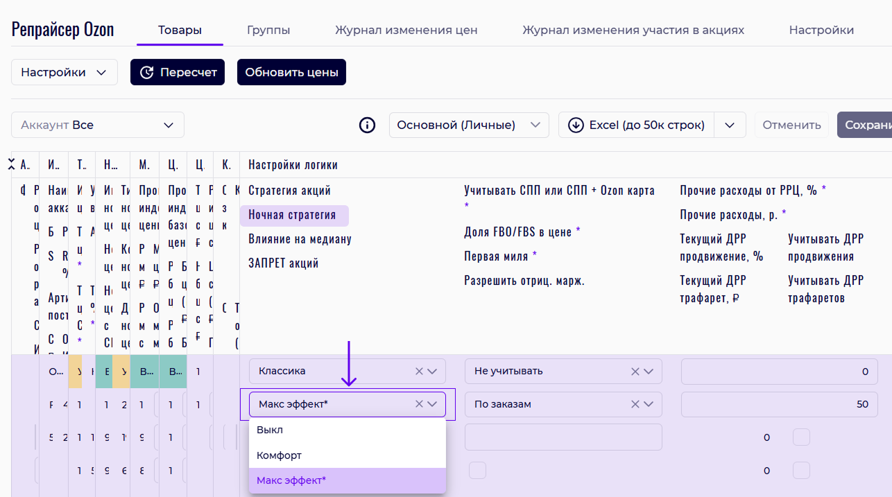 Ночная стратегия — инструмент оптимизации ценообразования ночью, когда конкуренция на Ozon снижается, а динамика изменений цен становится менее активной. В этом материале мы рассмотрим виды ночной стратегии и способы её включения по артикулам либо сразу на весь кабинет.